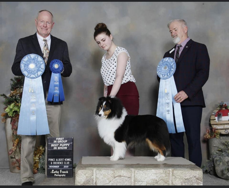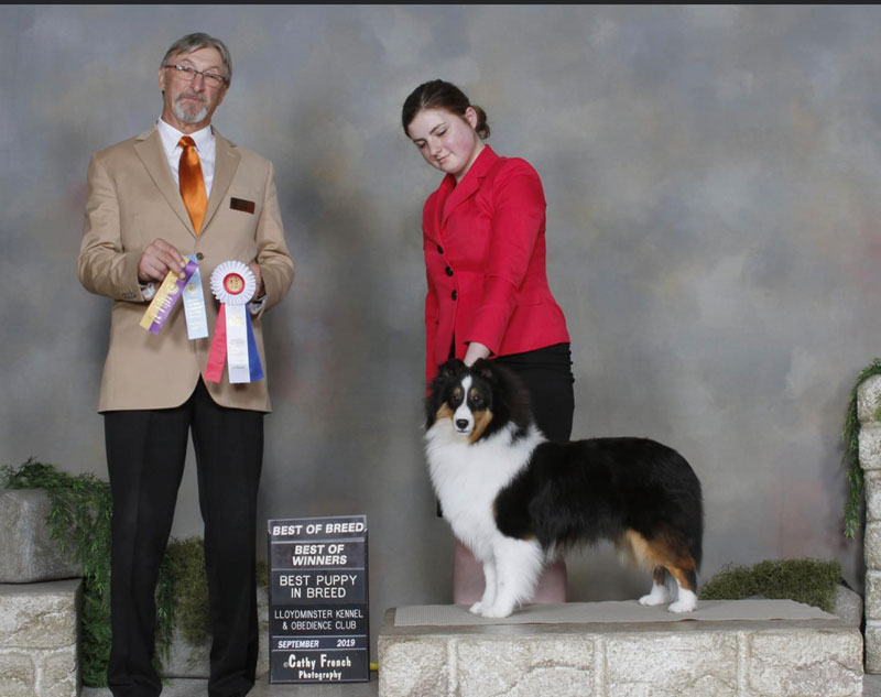 Tucker finishes his championship going Group 1 from the sr pup class!!!  He tops off the weekend with 2 Best Puppy In Shows under Breeder Judges Guy Jeavons and Mark Houston-McMillan (Grandgables shelties)  Tucker was handled exclusively by Shayna Nolan and is owned and loved by Blueshadow Shelties.